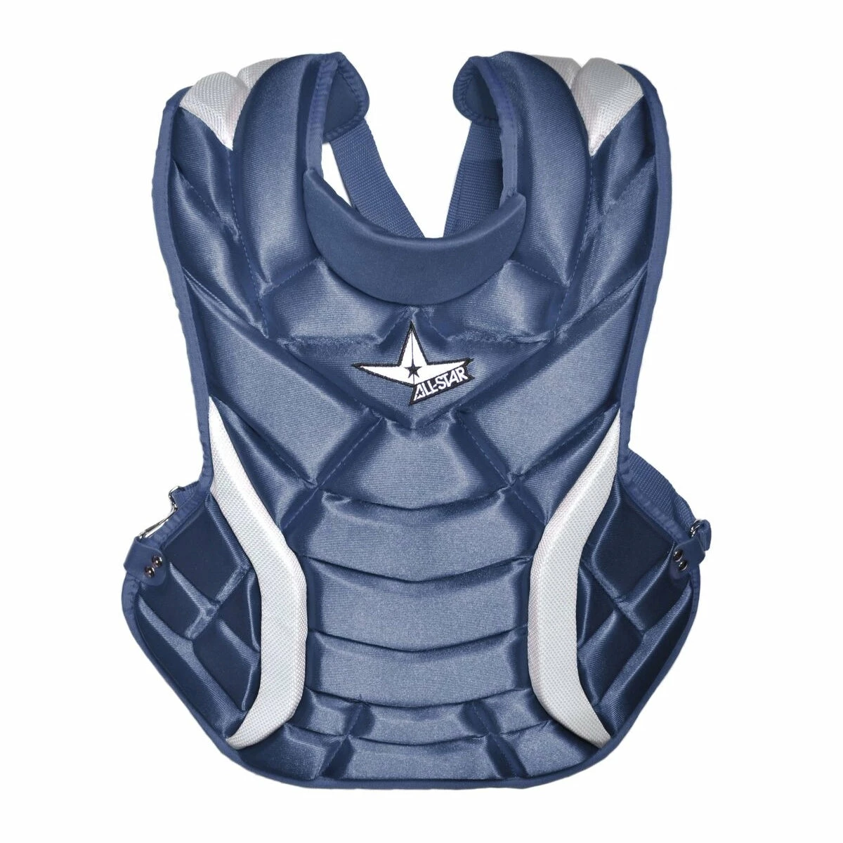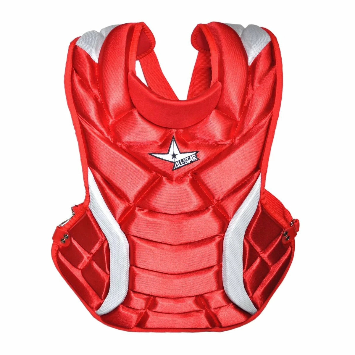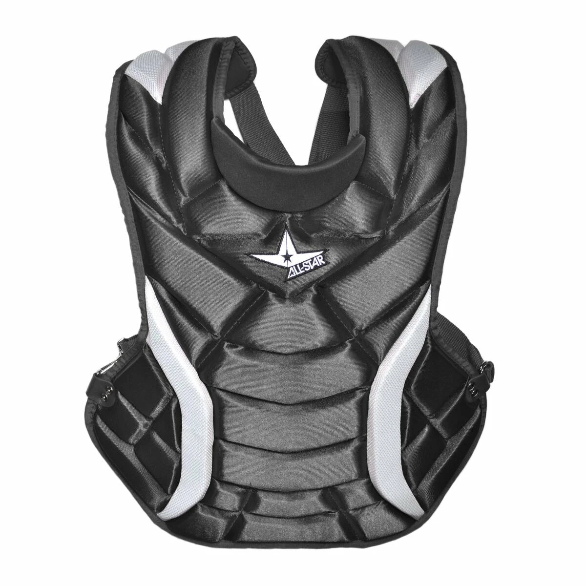 Its contoured neck collar and fully adjustable Y back harness creates optimal flexibility, while not restraining any movement. Multi layered foam padding with built in sternum plates provide outstanding durability and protection. It also comes with wedged abs that adds even more to this piece of equipment s focus on comfort and protection. This chest protector, in addition to many of its fantastic features, is unique to the Women s System Seven Series alone. Lightweight and reliable, the All Star Velo Pro Chest Protector is what you want to be wearing when you re behind the plate.