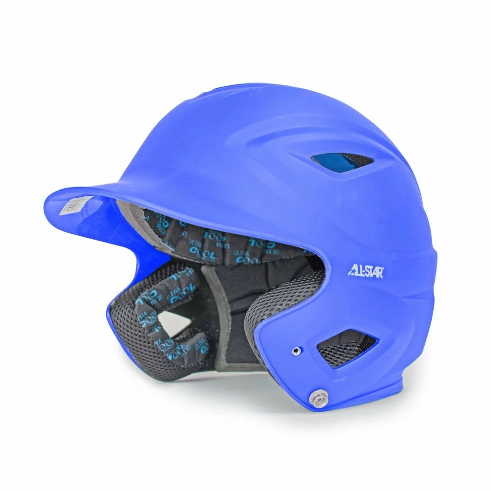 This adult sized All Star System7 BH3500M Matte Baseball Helmet ABS shell is designed for maximum coverage in critical areas. The interior foam lining deploys Ultracool to provide the batter with a constantly cool, sometimes even dry helmet. Next, ventilation achieves more of the same due its strategically placed components for maximum shell strength. Lastly, this All Star System7 lends its face-masks and chin straps for extra convenience.
