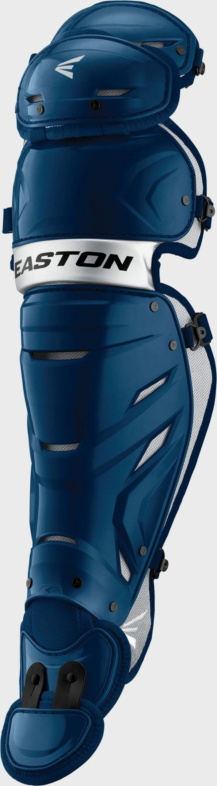 Protect the plate like a Pro with Easton’s® Pro X™ Catcher’s Gear, worn by Austin Hedges. The Pro X™ Leg Guards’ wide-set knee design provides a larger surface area in the blocking position, allowing for more explosive side-to-side movements. The reinforced knee and thigh connection provides a more secure fit when moving in and out of the catcher’s squat. The inner, removable knee pads are built with shock-absorbing Poron XRD™ foam, and are surrounded by plush foam for added support and comfort. The Pro X™ Shell, with a removable shin pad for comfort adjustability, has a vented designed and an EVAIR™-foam liner for increased airflow and breathability.Â
