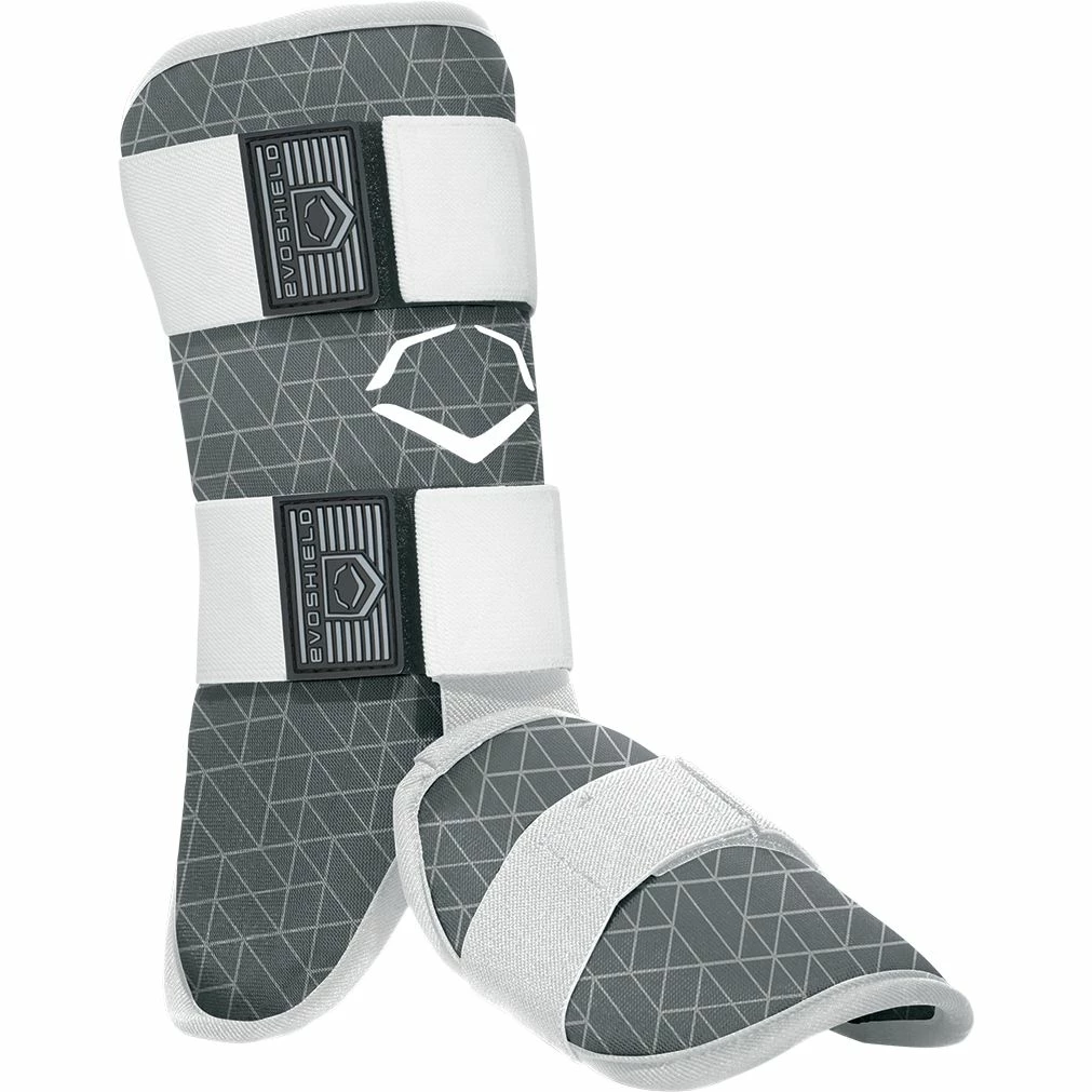 The EvoShield EvoCharge Batters Leg Guard WTV1100 defines the game of baseball. It allows players to consistently be fearless at the plate because they aren t afraid of wild ptiches. There is Custom-Molding, Gel-to-Shell technology. The technology begins with the shield beginning soft and flexible but transforming to hard and protective in minutes. This baseball leg guard molds to fit either leg of the player, so regardless if you re a righty or lefty you can have an ankle guard. Also, the EvoShield Evocharge Batters Leg Guard WTV1100 includes inside ankle protection for your lead leg. So, if a ball is very low and inside on the inside corner, this EvoSheild baseball leg guard protects you.