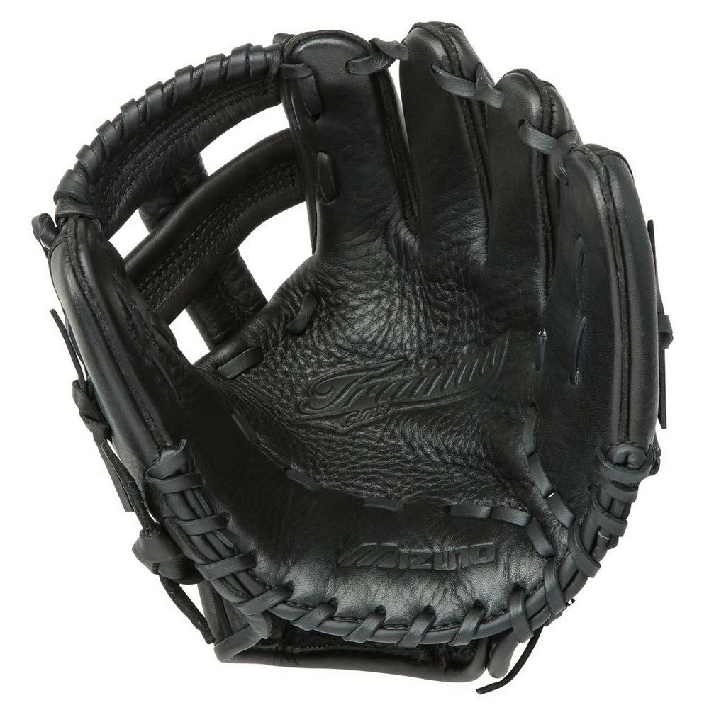 Full grain leather training glove, designed to aid infield and throwing drills, while teaching proper mechanics for infield play.