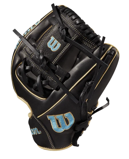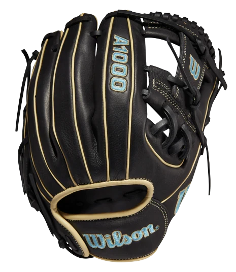 Take full control with the A1000ยฎ DP15 11.5โ Infield Glove, the ball glove with a narrower wrist opening and shorter finger stalls to create a secure fit for players with smaller hands. Tropical Blue Outlined Logos pop against the Black Full Grain leather, and the H-Web and shallow pocket make transfers a breeze