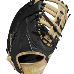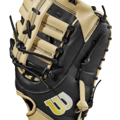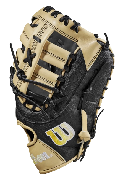 Engineered with a single break point design, the A2000 1679SS first base mitt is designed to play like an infield glove when handling ground balls and pop ups. All new for 2023, the A2000 1679SS checks in at 12.5” with a Single Post Web and deep pocket to scoop any low throws in the dirt or secure any hard-hit line drives down the first base line. Black and Blonde Pro Stock® pairs with Black SuperSkin™ for elite feel and durability, and White and Yellow gradient Bold Logos complete the modern look.