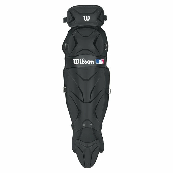 Wilson Prestige Adult and Intermediate Leg Guards are built to protect a catcher s most important asset: his legs. Wilson Prestige Adult Leg Guards WTA3503BL17 are 17 inches , and the Wilson Prestige Intermediate Leg Guards WTA3503BL15 are 15 inches. Designed specifically for League play, these Leg Guards offer the optimal protection for catchers looking to get serious about the position and are dedicated to staying healthy and effective on the field. Wilson s Pro Grade material is modeled after the gear of some of professional baseball s best catchers with a form fitting grip that contours around your body for a custom feel. Forward facing clips make getting in and out of the gear in-between innings that much easier while creating a tight grip around fragile areas of the leg susceptible to impact.